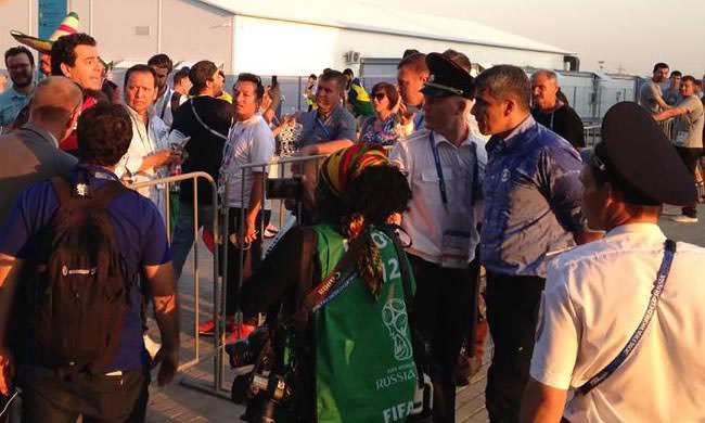André Galindo teve desentendimento enquanto gravava passagem na Arena Samara, na Rússia.